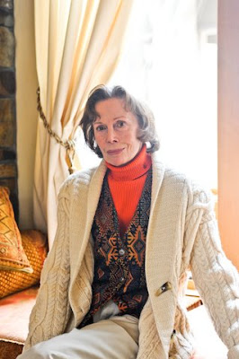 Wild turkey foraging in one of the pastures. Mercifully hidden in the grass are her eight wobbling babies struggling to keep up. Old log & rock cabin in background.
